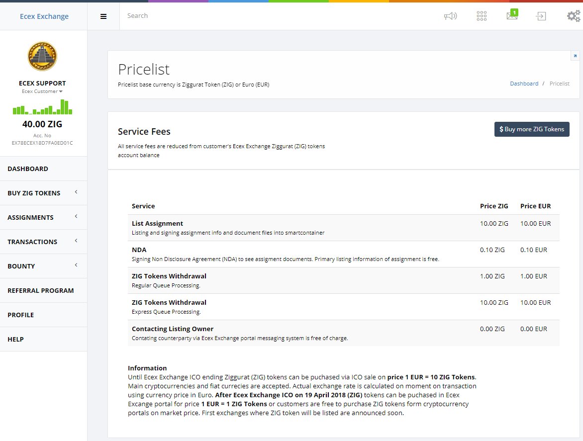 Ecex Exchange ICO https://ecex.exchange  Until 19 April ZIG tokens base price is 1 EUR = 10 ZIG, after that 1 EUR = 1 ZIG