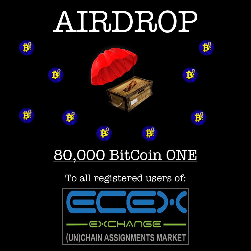 Airdrop  - 80 000 BitCoin ONE tokens distributed to Ecex Exhange customers on 8th of June, hurry! Open account at  https://ecex.exchange