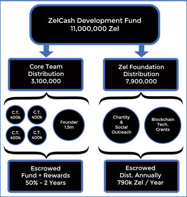 Here is a link to the full slidedeck describing the Zel Dev Fund distribution and lockup, along with the future plans for securing funding for Zel. https://goo.gl/3vyMdd
