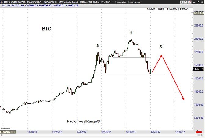 E' la 6 volta che il prezzo quest'anno crolla oltre il 30%. Le altre 5 volte il successivo rimbalzo è stato pari a: +76% +237% +183% +165% +152% [TRADER PORN MODE ON] Se il rimbalzo questa volta fosse uguale alla media degli altri 5 significherebbe arrivare a 28.000$  [TRADER PORN MODE OFF] le tue analisi sono sempre molto carine perche posti numeri veri, medie vere e le osservazioni sono acute grazie per renderci partecipe, anyway anche io avevo osservato la medesima cosa (ma senza la precisione matematica) Grazie Per compensare la precedente previsione bullish, ne posto una bearish  C'è la possibilità tecnica che, SE (grande se) i bitcoin hanno davvero invertito il loro trend rialzista, questo recupero dopo il crollo di ieri vada a formare sul daily un grande head & shoulder che, per chi non lo sapesse, è una delle principali formazioni tecniche ribassiste. In questo caso probabilmente il rimbalzo positivo durerà fino a 17000 per poi invertire bruscamente. In ogni caso per avere la riprova che il trend si è davvero invertito dovrebbe scendere sotto il minimo di ieri fino al successivo supporto che è intorno a 8000. E' solo un'ipotesi (che io condivido poco) ma se fosse vera occhio a cosa succede intorno a quota 17000, sempre che prima ci arriviamo  La sintesi grafica di quanto sopra è questa: https://pbs.twimg.com/media/DRsH_EBUQAE2XNc.jpg:large