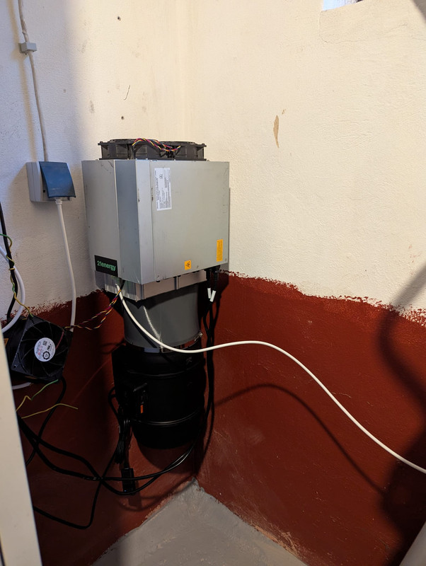 Ware ist angekommen (außer der PWM-Dummy), und insbesondere der 3D-Druck für die Abluft mit dem Schlauch nach außen macht richtig viel aus. Werkstatt ist jetzt bei aushaltbaren 30 Grad, und der Miner wird doch deutlich besser gekühlt. Außen gehts optisch noch:  Innen ists viel wilder:  Strom und Kabelführung ist absoluter Müll so, der Miner war für die Garage gedacht aber zu laut. Werkstatt ist notbehelf ich muss da nochmal vom Elefix steckdosen ziehen lassen. hier sieht man mal ein bisschen vom HA:  Geht ja gut voran bei dir... welche Firmware nutzt du eigentlich? Powertarget klingt nach braiins? Bei LuxOS war das umschalten zwischen den einzelnen Stufen ziemlich reibungslos... Ist allerdings Temperatur geführt bzw. ergibt sich der leistungsverbrauch nach der Taktfrequenz, bringt sicherlich bissl mehr Schwankungen im stromverbrauch...