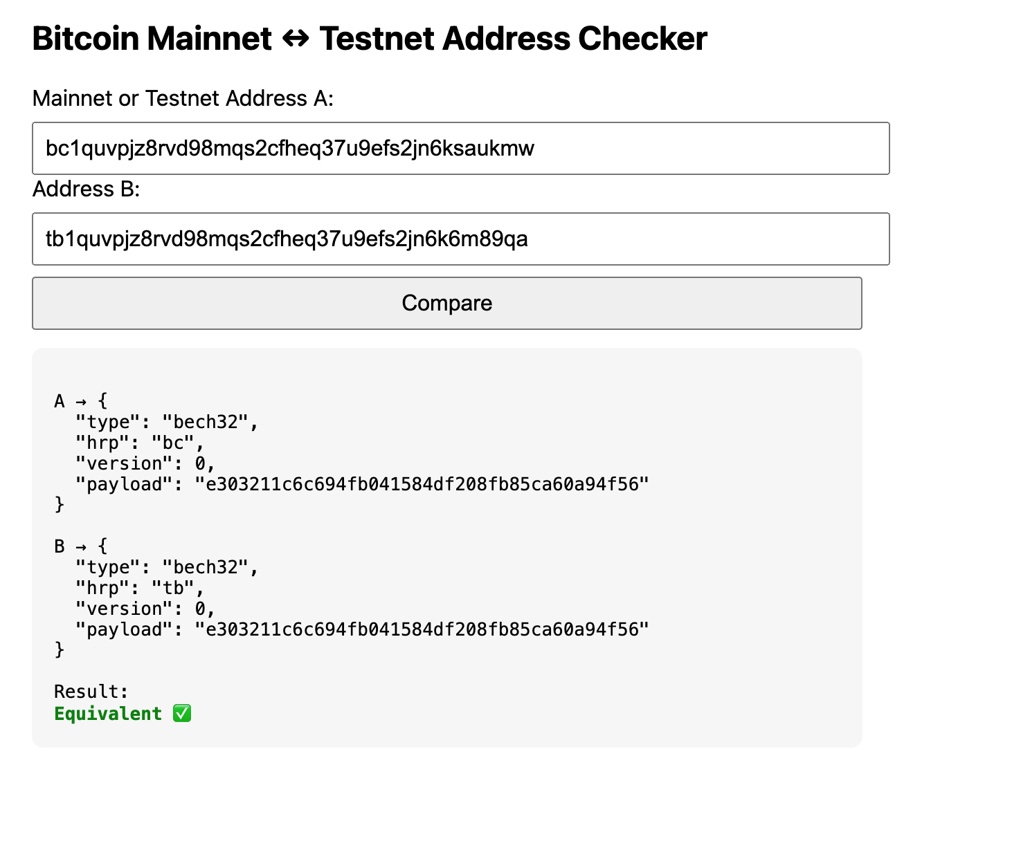 <h2>Bitcoin Mainnet ↔ Testnet Address Checker</h2>