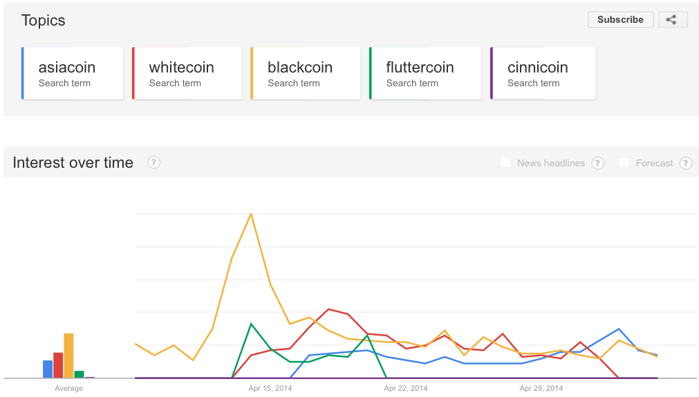 Google trend comparison of different coins: We and BlackCoin are leading the race. It is very important that we get the word out about what we are doing, if you have contacts at weblogs covering cryptocurrency, news agencies, Twitter with a lot of followers, etc. Please, help us get the word out, motivate them to publish articles about us. We need it. Lol, kudos +1 to you for pulling this out. Yeah, I live in Asia and I know some shops that receives Bitcoin as payment just for the sakes of free marketing/PR. I can imagine how straightforward it would be to just walk out and talk to them to accept Asiacoin where several thousands of visitors come to our official site everyday with more and more people hearing about this coin in the coming months. This may not be easy but once you overcome the tipping point... it just snowballs.